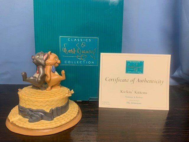 "Kickin' Kittens" Toulouse and Berlioz from Walt Disney's The Aristocats. In original box with Certificate of Authenticity. Box and figurine are in excellent condition. In a subtle yet