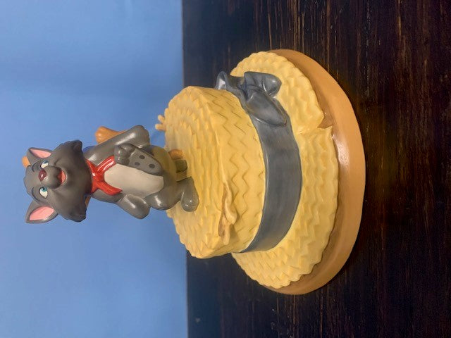 delightful tribute to Maurice Chevalier, the famed French entertainer who came out of retirement to sing the 'Aristocats' theme song, the artistically inclined kittens dance atop a dapper straw hat. Limited to Production Year 2004. Sculpture is approximately 4 5/8" high, 4 7/8" wide. Only one available. Free insured shipping in US only. No returns on collectibles. Items have been inspected before shipping.