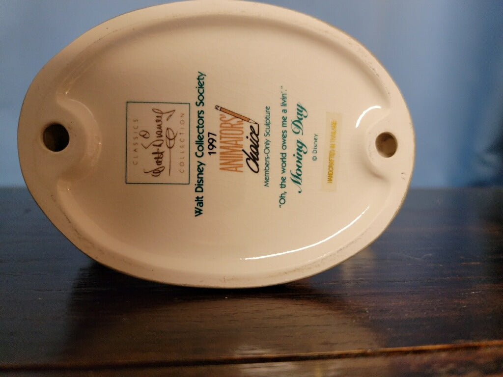 "Oh, the World Owes Me a Livin'," from Walt Disney's Moving Day. 1996 Winter/Spring Collection. Walt Disney Collectors Society 1997 Animators Choice Award. Members-only sculpture. In original box, which has some wear. Comes with Certificate of Authenticity. 9" tall. Only one available. Hand sculptured. Free insured shipping in US only. No returns on collectibles. Excellent condition. Items have been inspected before shipping.